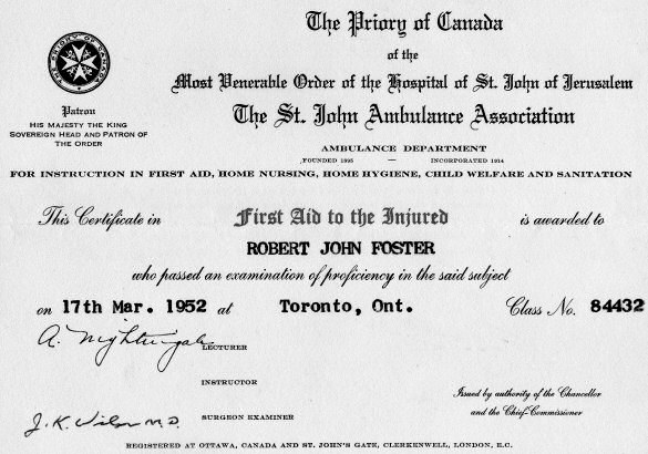 St. John's Ambulance Association examination on March 17, 1952.